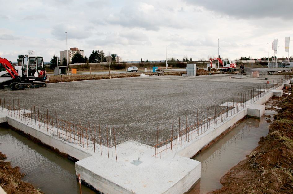 Fundamente in Stahlbeton geschalt für Industriegebäude.