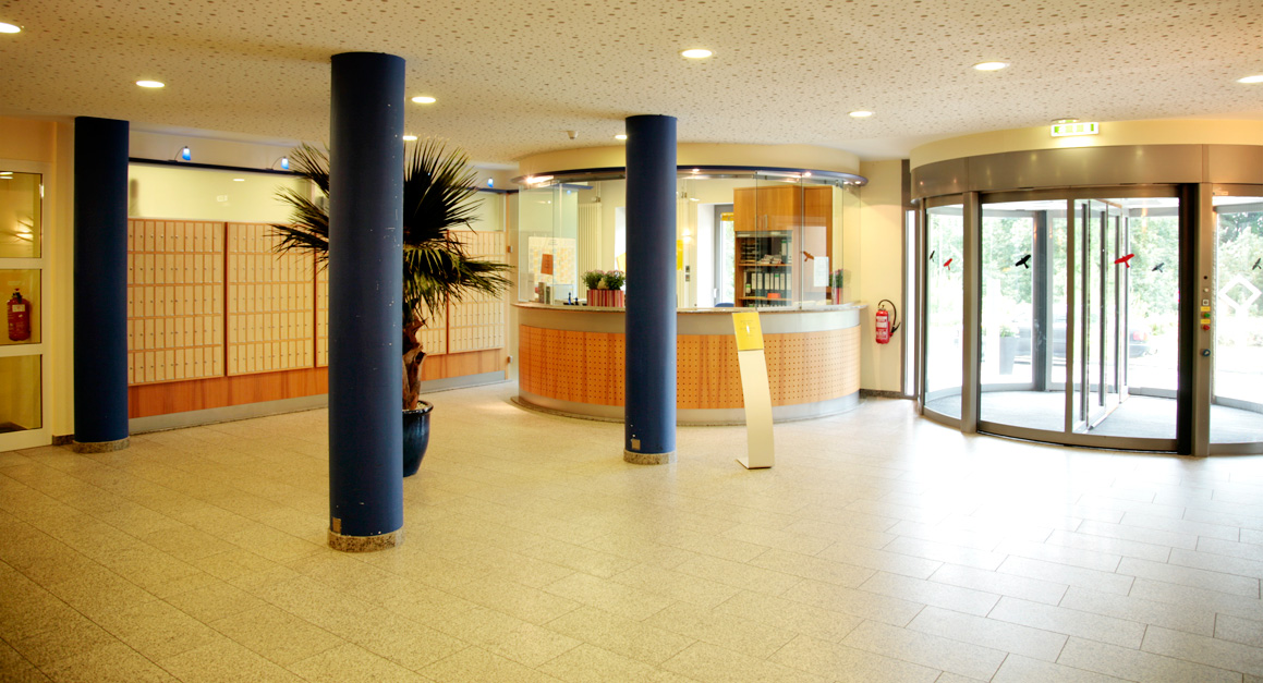 Das Empfangsportal der Fachklinik Wilhelmsheim mit seinen gegossenen Stahlbeton Stützen steht beispielhaft für unsere Arbeiten im Bereich Tragwerke und Statik.